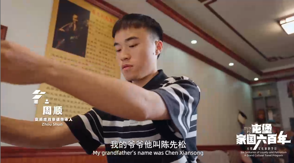“我的爷爷陈先松,是安顺地戏的国家级代表性传承人。他一直希望我学习地戏,可我接触得太晚了。后来爷爷离世,当时来了很多人悼念他。地戏是爷爷留给我最宝贵的财富,我下定决心练习,还尝试通过短视频和直播推广。第一条视频发布后,竟收获了四百多万的点击量,从此便一发不可收拾。其实我作为年轻人,平时喜欢刷直播、看视频,发现很多省外的戏曲很火,深受年轻人喜爱。我就想,家乡安顺的地戏为何不受当地年轻人欢迎,不能走出去呢?当时我就想以一个普通人的视角把它记录下来。”安顺地戏非遗传承人周顺说。