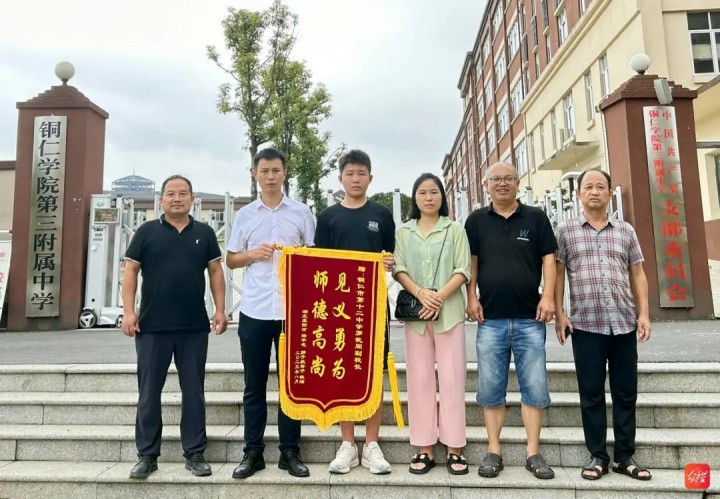 事后了解,被救母亲叫杨平花,是江口县人,早年嫁到湖北省襄阳市,这次回娘家,是带小孩到梵净山度假游玩。8月14日,为感谢罗武周的救命之恩,杨平花母子将一面鲜红的锦旗送到铜仁市第十二中学,锦旗上书写着“见义勇为 师德高尚”八个大字。收到锦旗,铜仁市第十二中学校长刘电林告诉笔者,罗武周老师勇救落水母子的行为为学校争了光,同事们获知他的救人事迹后都很激动,纷纷表示要向他学习。
