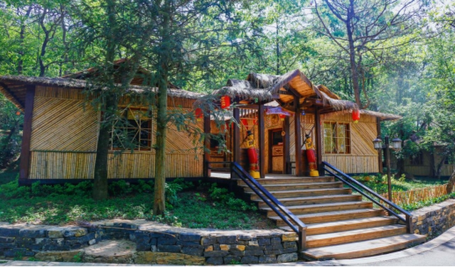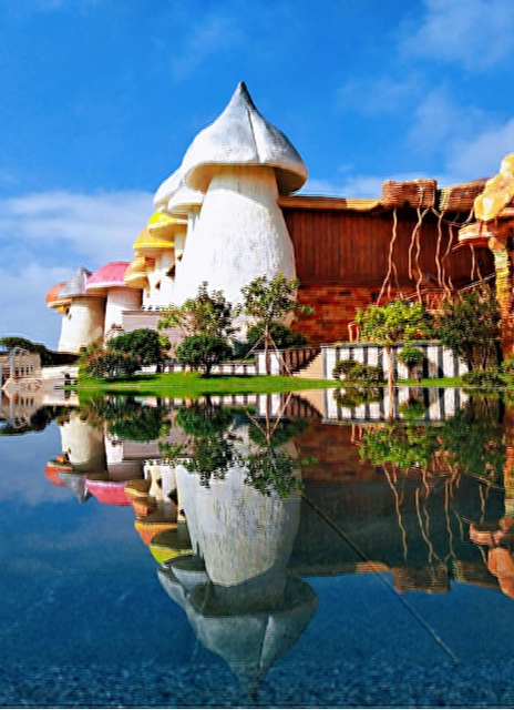 全国首个以野生蘑菇外观建造的生态宜居酒店。独享“五觉一心”(视觉、听觉、嗅觉、触觉、味觉、贴心)、八大峰值体验(预定房间、交通保障、进入酒店、入住房间、即刻餐食、休闲娱乐、离开酒店、二次预定)360度管家式服务。酒店内花园景观利用现有坡地地形,打造曲径水幽的小道,水景及夜间景观照明,结合酒店外观设计,创造出一个独具特色的建筑景观。内装饰采用原木、麻棉饰面布、石材为主料,结合现代灯光照明效果与现代装修审美特点,打造一个生态,个性鲜明,具有野奢风格的高端特色酒店。酒店精心打造了52个房间,优质奢华的内部支撑与景区内多元业态及周边特色元素相得益彰,通过匠心设计为游客带来一种独特体验。