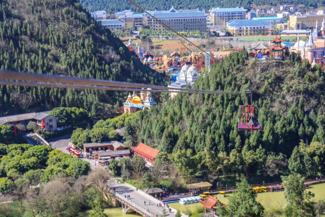 凌空翱翔,带你体验飞一般的感觉。始于定康山水池,途径民族文化美食园,横穿松林桥,远眺阳光梦幻王国,跨过纳谷河,终于日月亭。给你上帝视角的俯视,让整个景区美色一览无余。