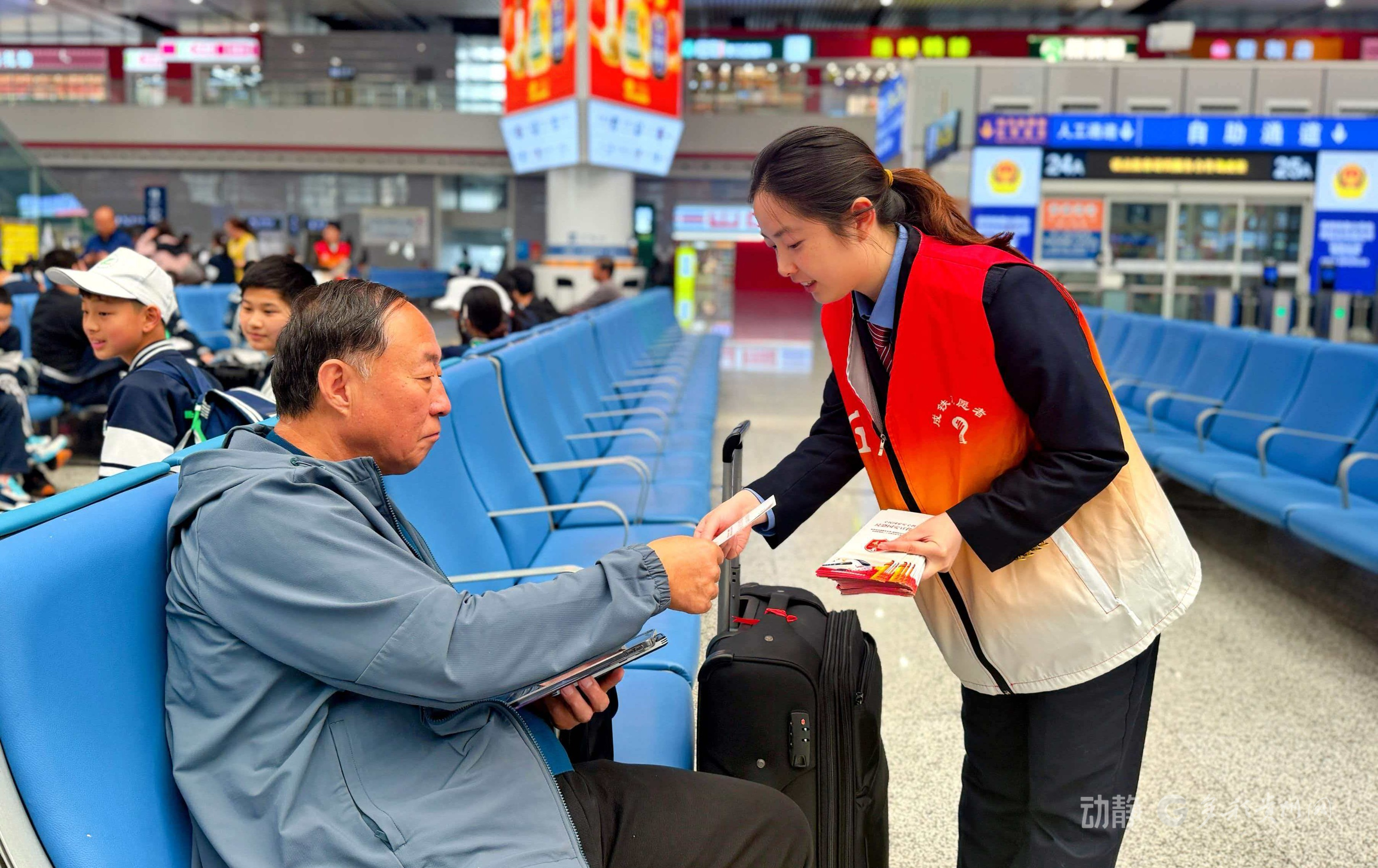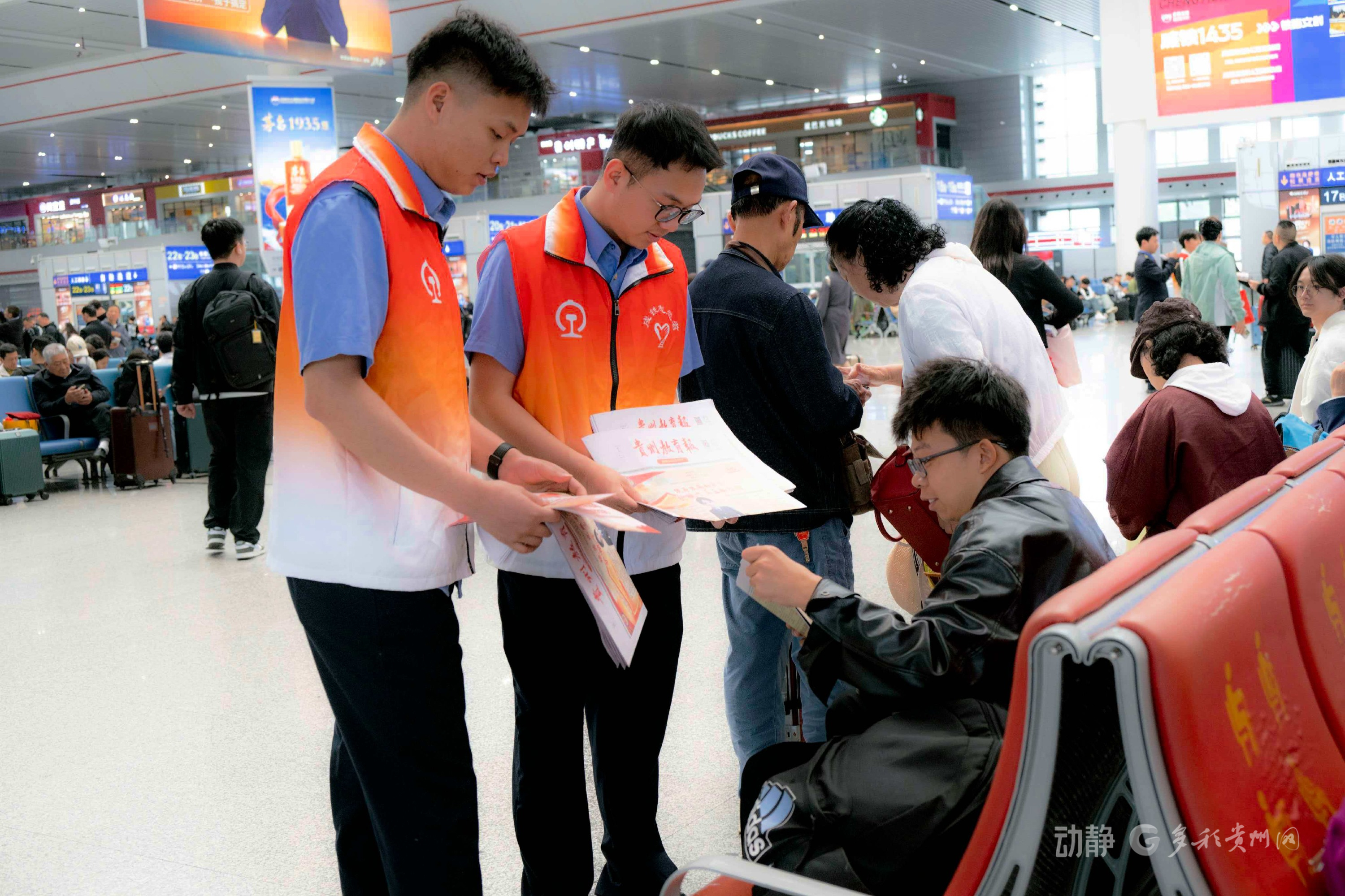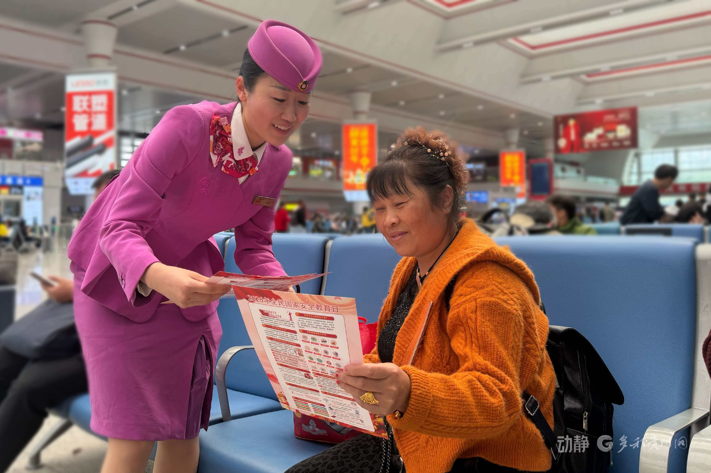 “什么是国家安全?”“铁路出行有哪些安全注意事项?”上午9时许,贵阳铁路多部门工作人员与青年志愿者在贵阳北站候车大厅现场开讲,通过摆放宣传展板、发放宣传手册、一对一咨询解答等形式,向过往旅客细致讲解总体国家安全观,普及网络安全、防范电信诈骗等实用知识,宣讲铁路安全出行规范与文明乘车常识,引导广大旅客主动关注国家安全、增强自我防护意识,携手共筑全民守护安全的坚实防线。来往旅客纷纷驻足聆听、翻阅资料,现场氛围热烈有序。
