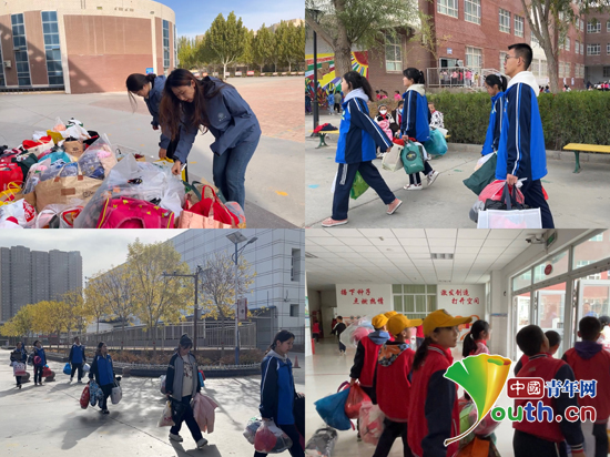 图为辽宁大学第25届研究生支教团成员带领志愿者同学搬运、整理、捐赠衣物。辽宁大学第25届研究生支教团供图
