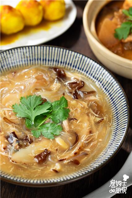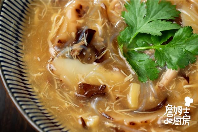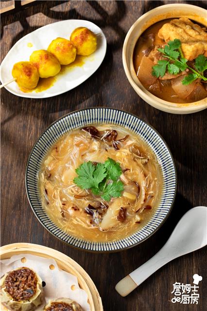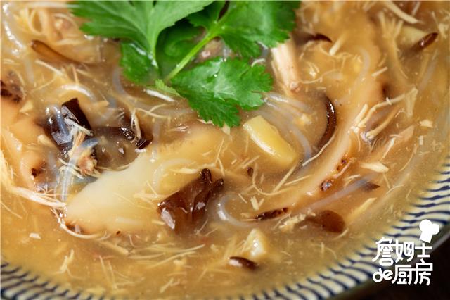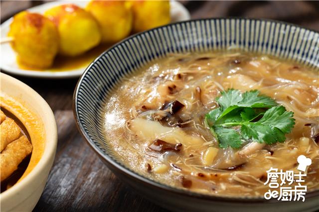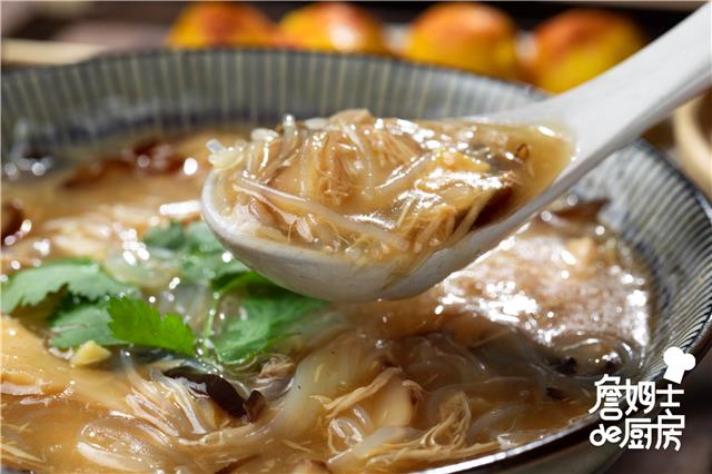所以大家渐渐用粉丝取代了鱼翅,再用冬菇,木耳,肉丝来模仿鲍鱼、海参和蟹肉的口感,让碗仔翅成为了真正的“素鱼翅汤”!