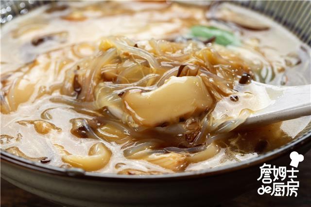 配料不过粉丝、木耳、花菇等寻常食材,但经过用高汤炖煮,马蹄粉勾芡后,一秒就能化身这个季节最熨帖的存在~