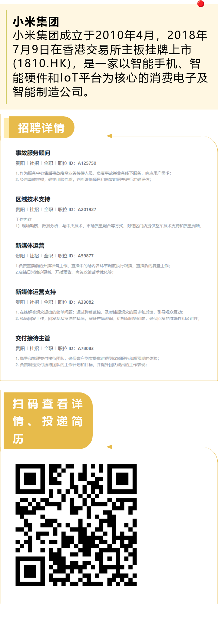 【知名企业】小米集团招聘!贵阳有岗!