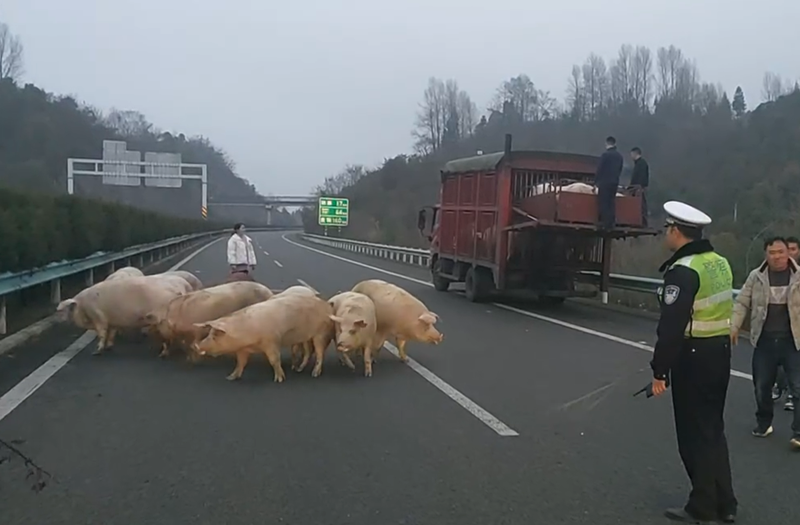 追、赶、堵、围!经过一个多小时的努力,存活的45头“二师兄”终于被安全送上转运车,成功帮助车主挽回损失近10万余元,消除了现场安全隐患,高速公路恢复正常通行。