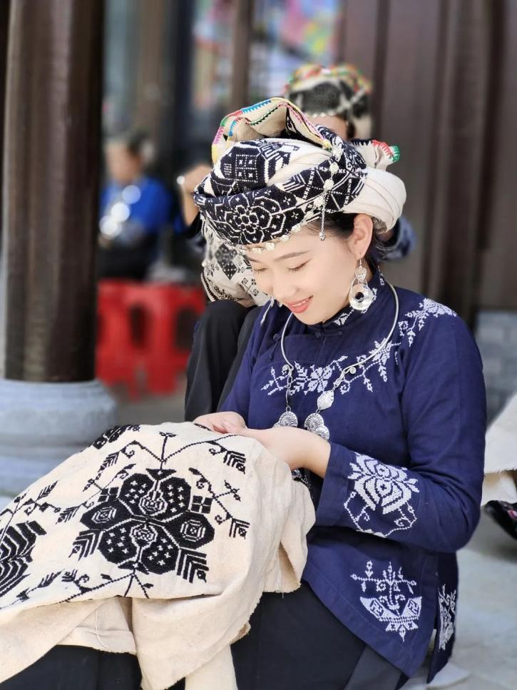 来自贵州黔东南施秉县马号镇六合村的一位苗族姑娘,2022年被评为非遗苗绣传承人。