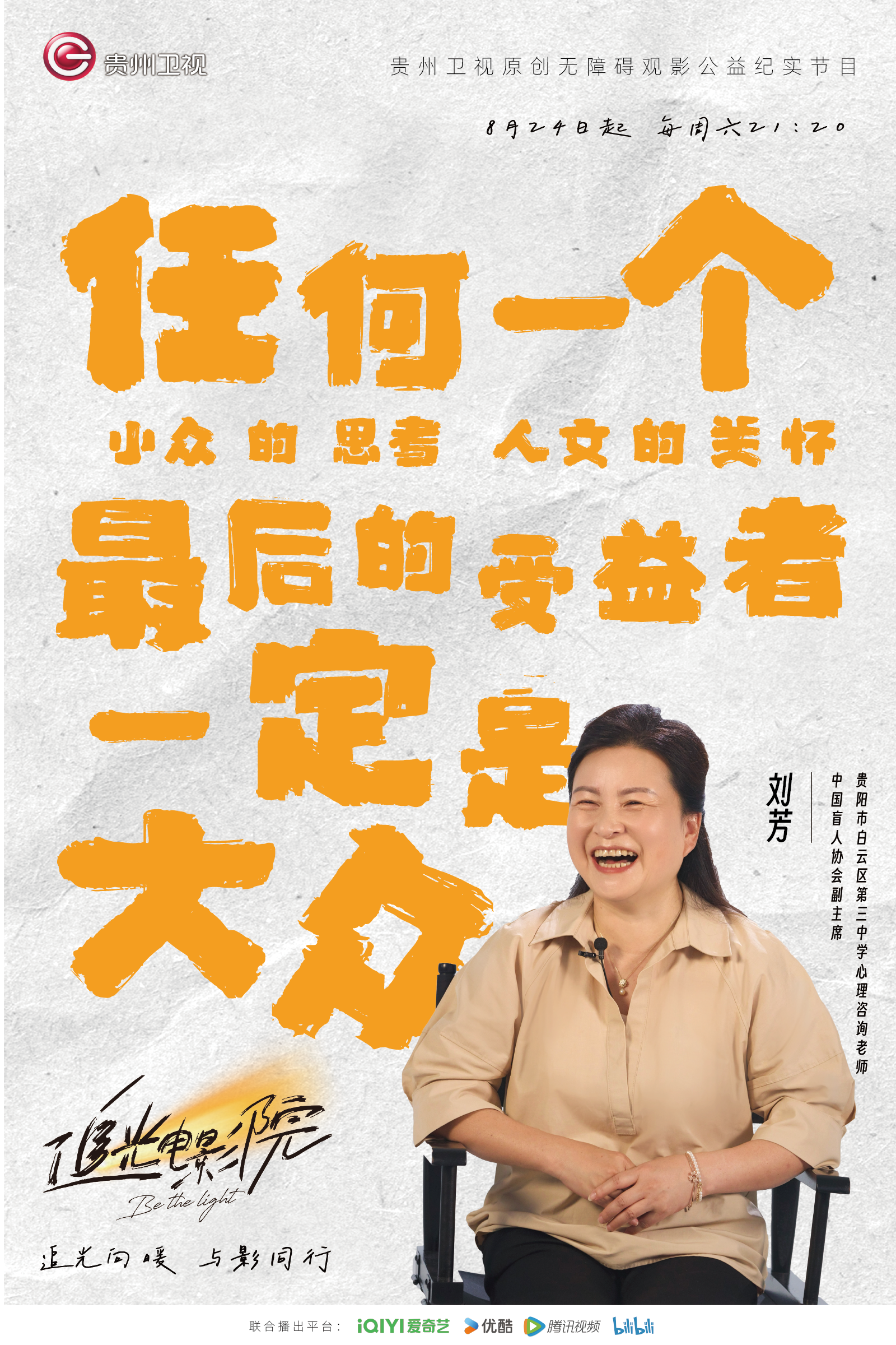 贵州卫视原创国内首档无障碍观影公益纪实节目,邀请视障朋友亲临影院,共赴光影之旅。记录鲜活人生,以小众情怀汇聚大众温暖,让每一份热爱都被看见。携手并进,共绘残健平等共享文化的美好图景。
