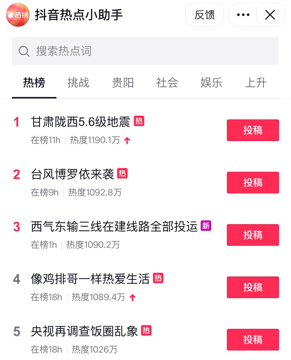 打开动静新闻客户端,刷动静听新闻。社交媒体热点打捞,洞悉社会情绪,最后来看各大热榜,明天再见!