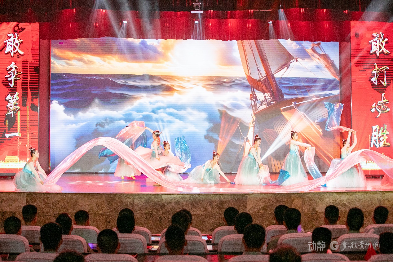 演出现场,贵州文艺工作者表演了舞蹈《扬帆起航》、歌曲《红旗飘飘》、相声《家乡美》、黔剧《奢香夫人》选段等丰富多彩的节目,表达对军人的崇敬和祝福,展现新时代军民团结共建美好家园的精神风貌。
