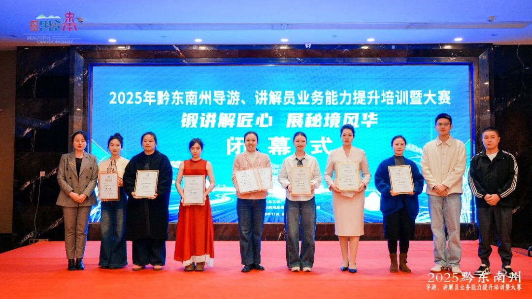 2025年11月21日,“煅讲解匠心·展秘境风华”2025年黔东南州导游、讲解员业务能力提升培训暨大赛在岑巩县思州大酒店圆满落下帷幕。