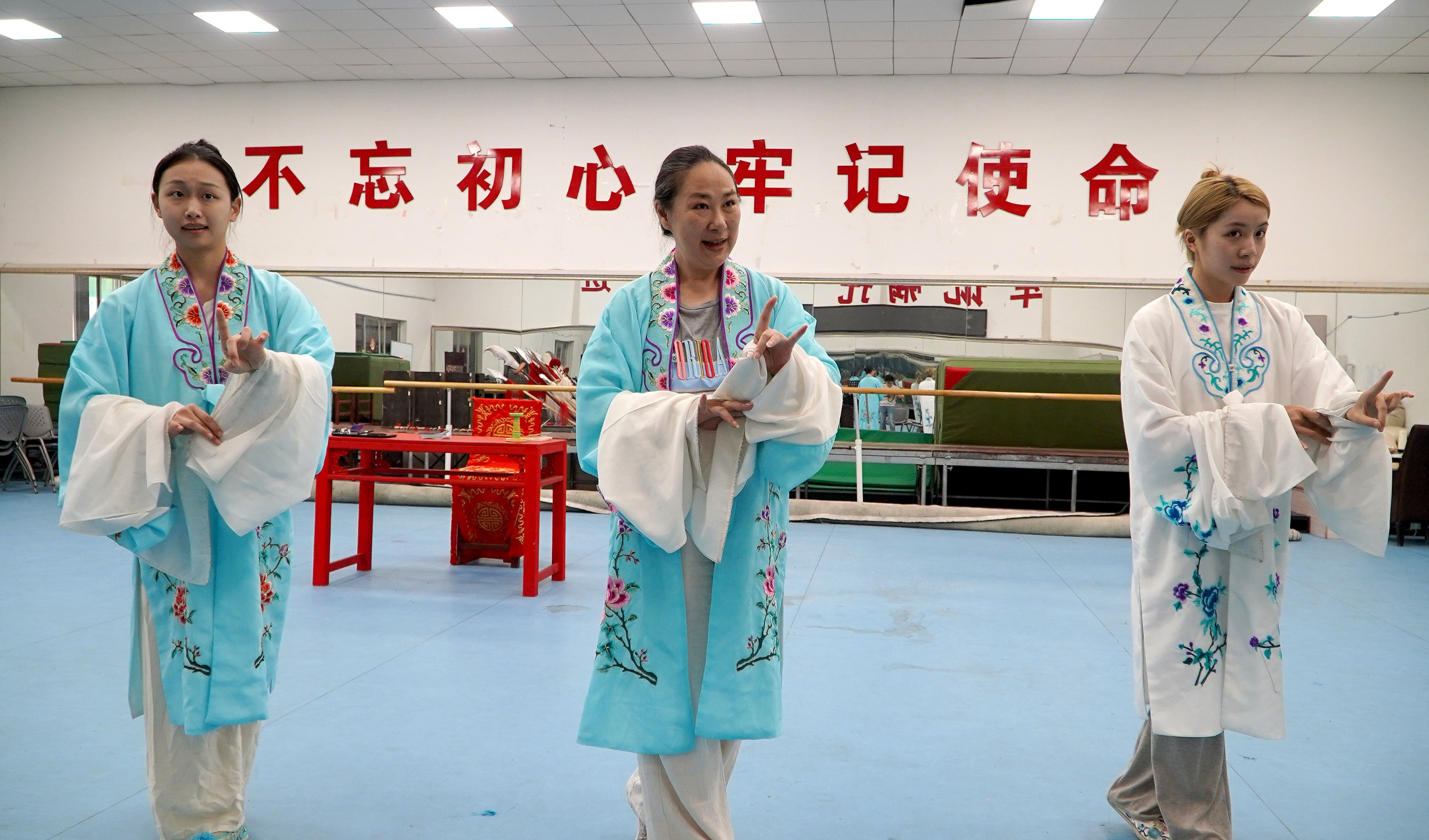 看名师授课现场,更像是看一场沉浸式的“阅读理解”。从剧情背景、唱词涵义,到表演风格、手眼身法,学员在老师的带领下不停地抠肢体动作细节,眼神走向,反复解读练习,是学习提高,更是传承。